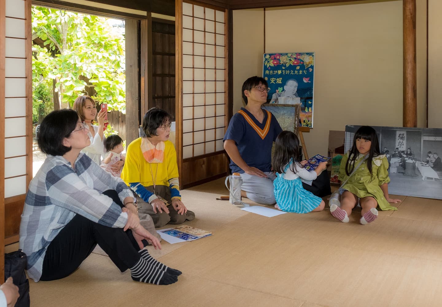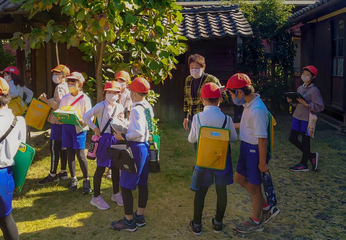 2021年11月9日は、朝から雨の中を新田小学校の生徒2クラスが、南吉の下宿先を訪れ社会勉強に頑張りましたよ。